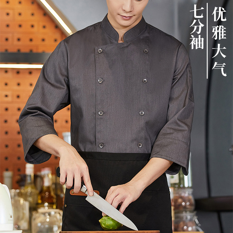 Повара высокого уровня, седьмой рукав Custom Hotel western Restaurant Kitchen Work Clothing Мужская одежда для питания осень и зимние блюда