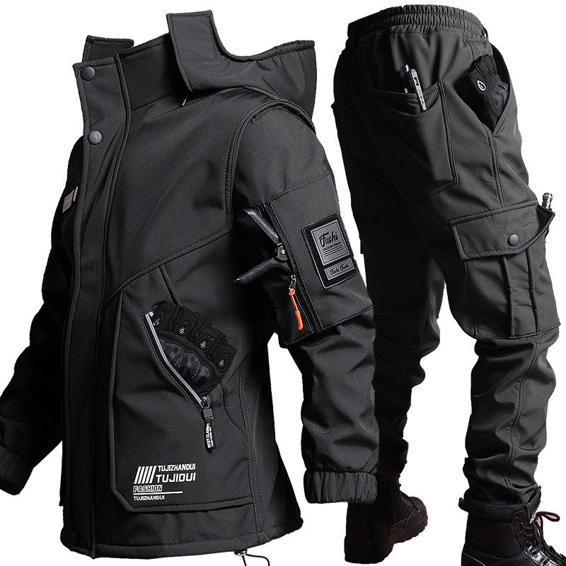 Дорожная куртка, мужской комплект, бархатный лебедь, водонепроницаемые ветрозащитные штаны, зимний велосипед, увеличенная толщина