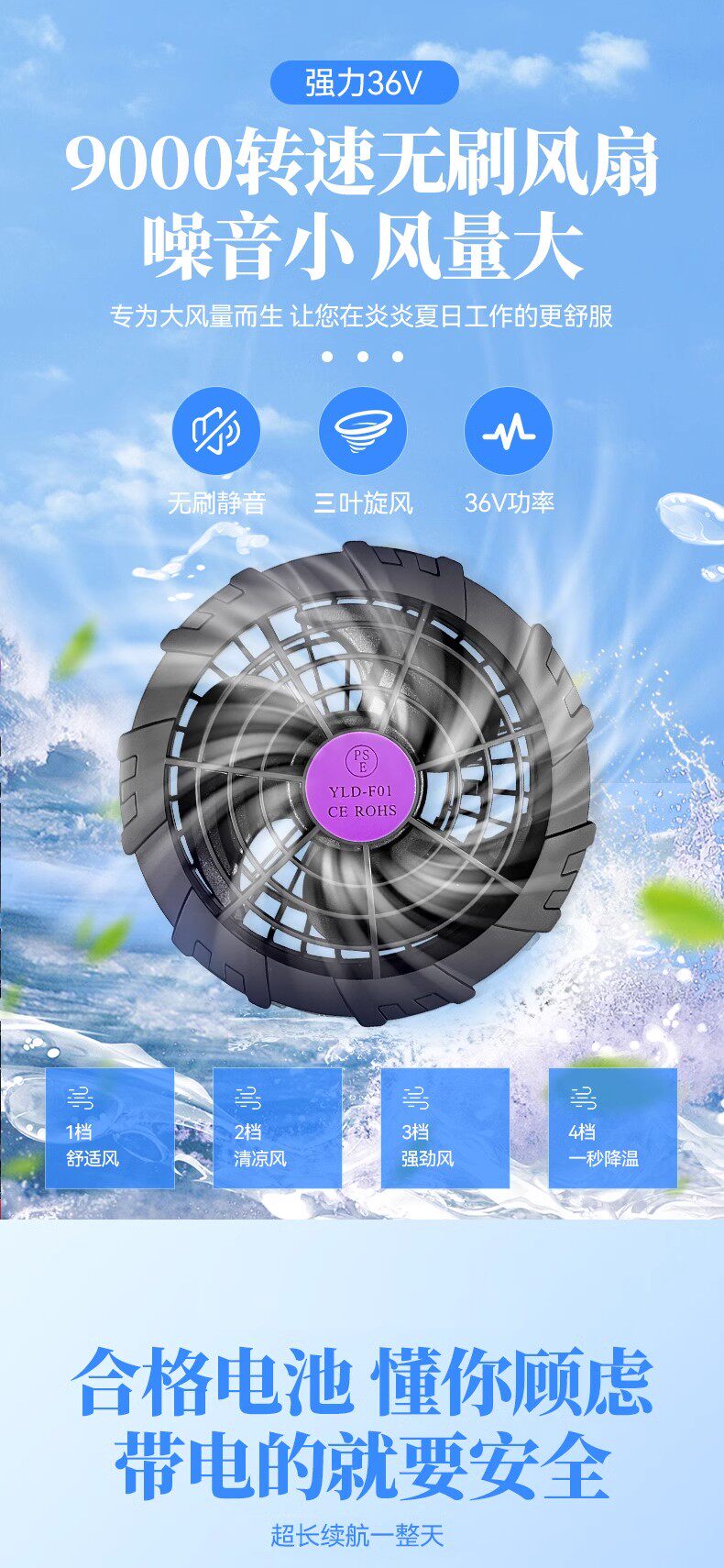 Летний охлаждающий вентилятор для работы, 36v, 4 шт