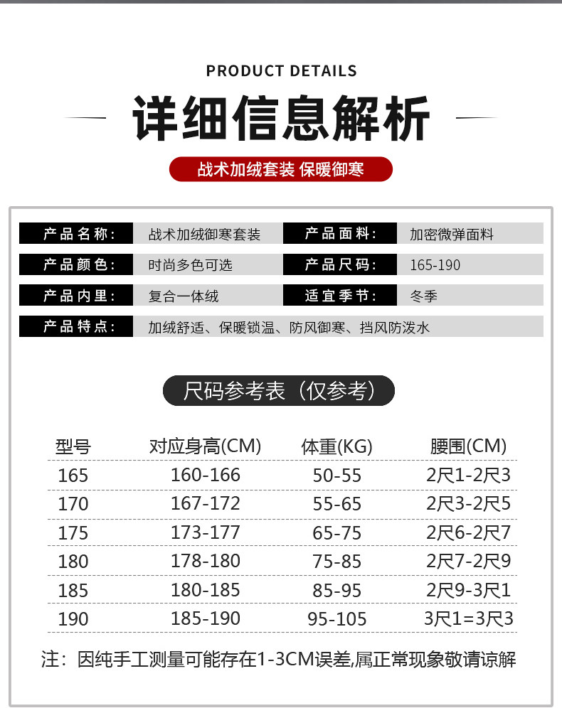 | Размер: | М/165 подходит для [90-110 кг], L/170 подходит для [110-130 кг], XL/175 подходит для [130-150 кг], 2XL/180 подходит для веса [150-165 фунтов], 3XL/185 подходит для 165-175 кг., 4XL/190 подходит для веса [175-190 фунтов], 5XL/195 подходит для веса [190–220 фунтов] |