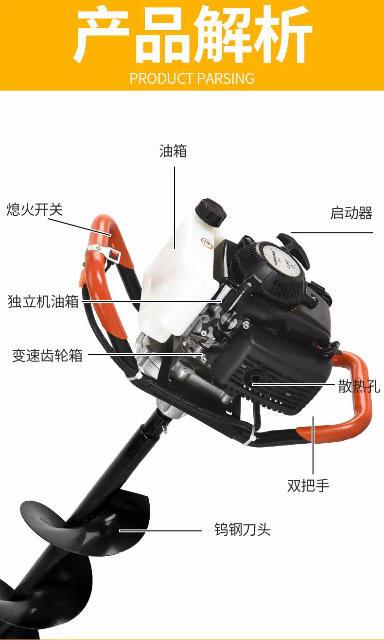 Тангванг бензиновый бурение сельскохозяйственного рыбацкого рыбацкого рыбалки с алмазным алмазом насасывание дерева буровая почва, чтобы оплодотворить машину для копания