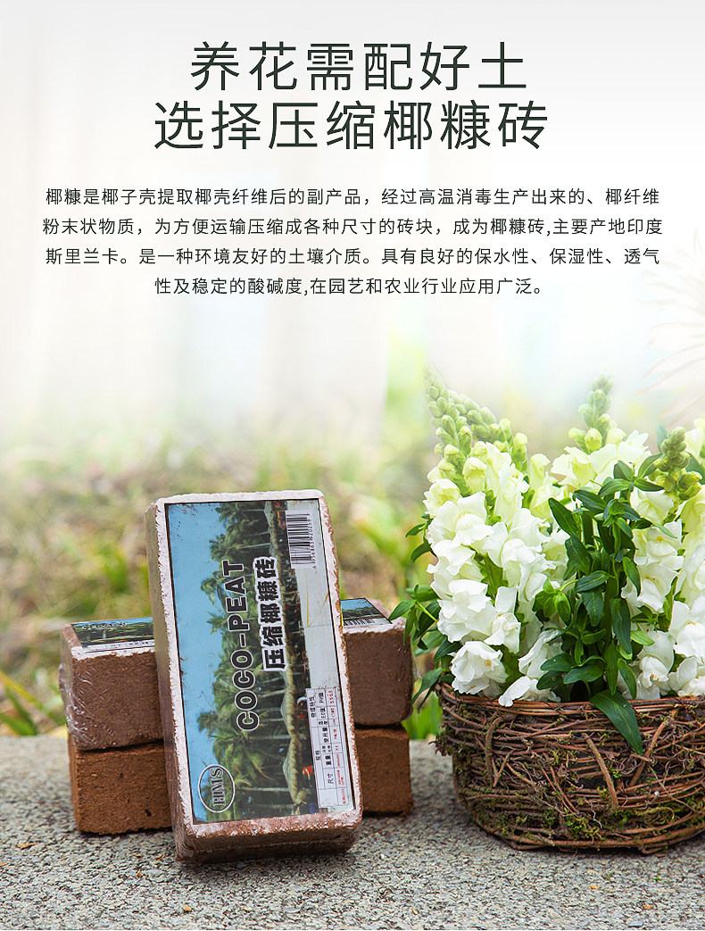 Кокосовый кирпичный питательный вещественный кокосовый кокосовой почва четыре цветы, мясо, суккулентное растение почвы с низким содержанием солнца универсальное цветочное жир.