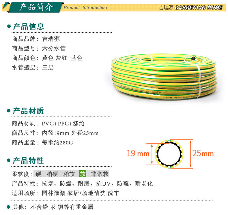 Мягкая водопроводная труба 3/4 водопроводная труба 19 мм Увеличенная 6 -точка высокого уровня, анти -безрешительное анти -безрешительное, взрывооборот, вкусовые шланги, цветы для мытья машины цветы