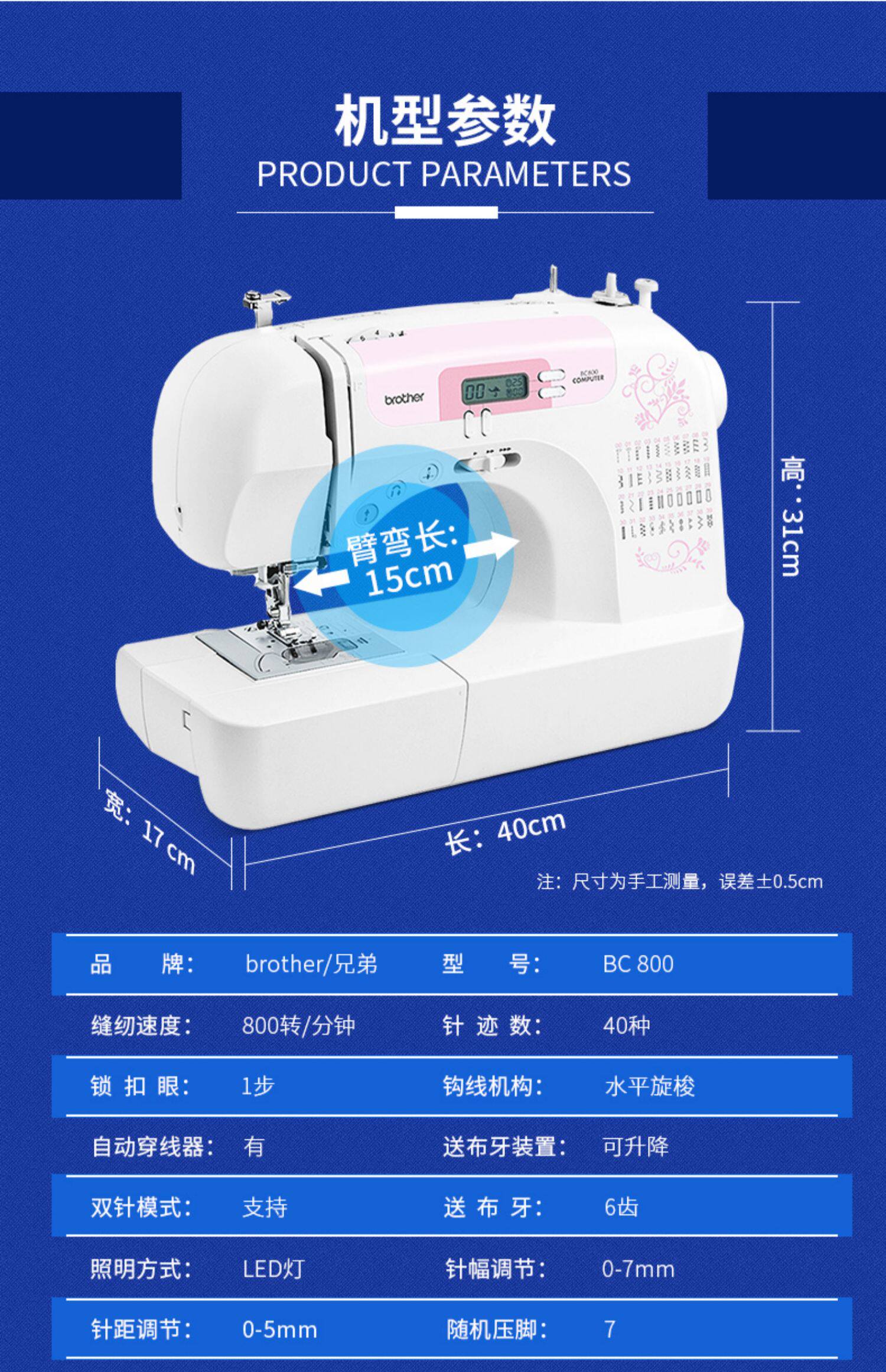 [Официальный флагман] Brother Brother Brand Полностью автоматическая швейная машина BC800 Домашняя электронная многофункциональная одежда
