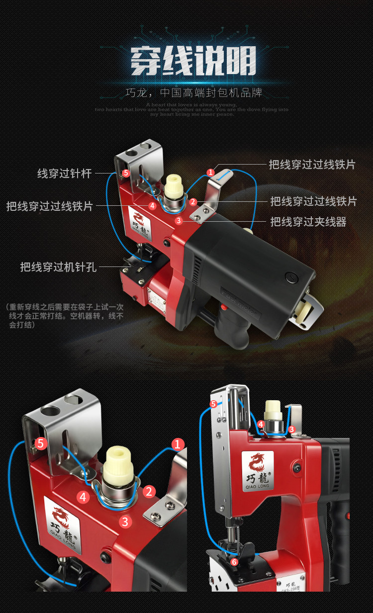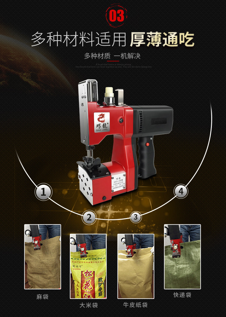 Qiaolong gk9-096 портативная электрическая швейная чартерная чартерная машина небольшая тканая пакетная машина для уплотнения рисовой пакет