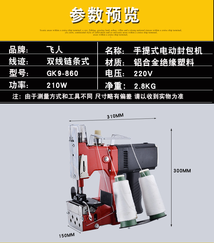 Feiren Dual -Line Dift -Clifting Electric Charter Woven Bag Sewing Machin