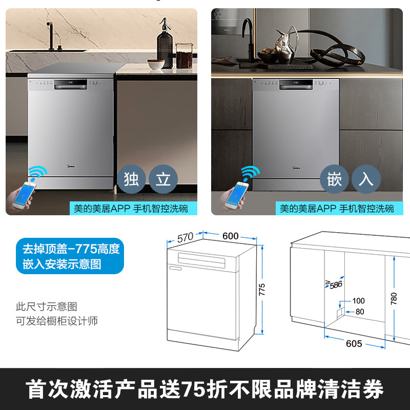 Midea Dual -Clorecous Dishwashware GX600. Автоматическая встроенная самостоятельная интеллектуальная тепловая сушка Большая емкость
