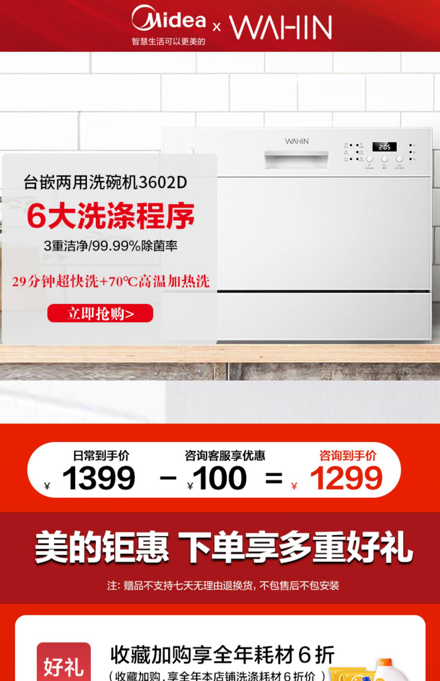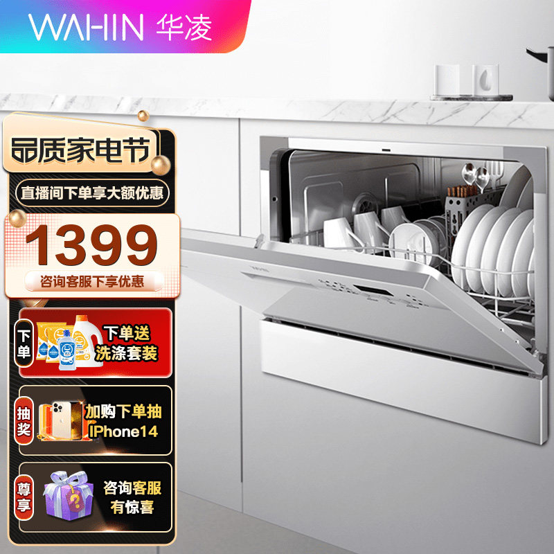 Midea производила посудомоечную машину Hua Ling Полностью автоматическая домашняя настольная настольная настольная встроенная встроенная миска.