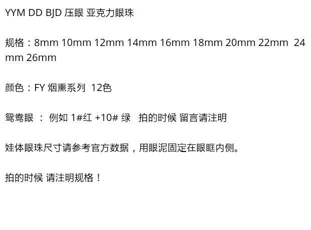 Yym humanoid dd bjd eye eye aryl -eye bead fy smoky series 12 цветовой доход