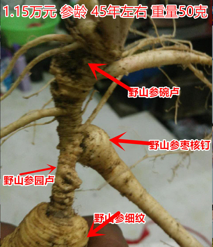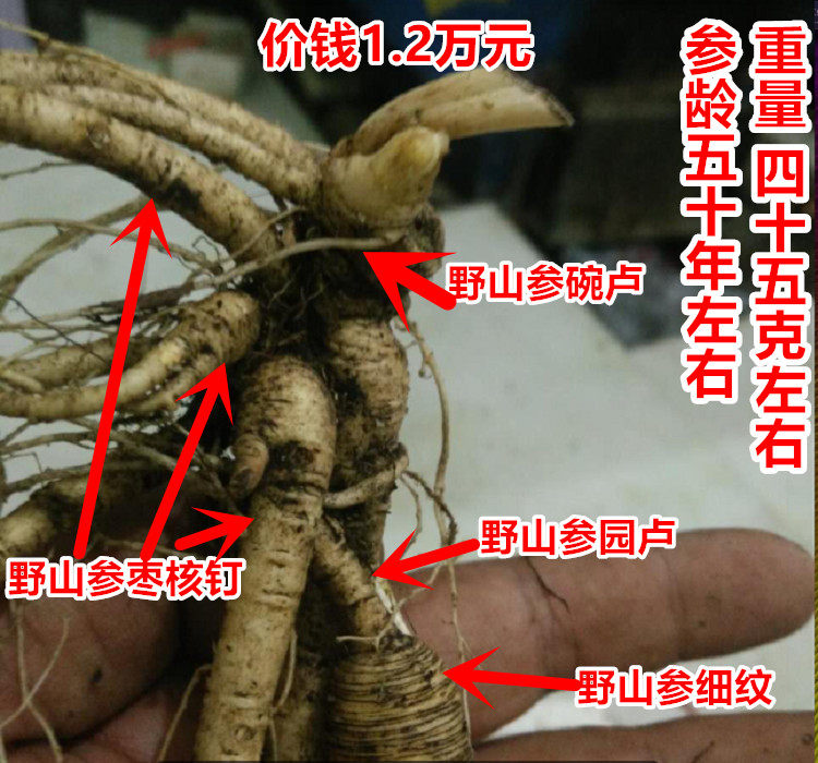 Северо -восточная свежая дикая гора женьшень Гинбай Горная гора Чистое женьшень дикая гора с почвой гора Сяньно, предложений горы и лесного женьшеня