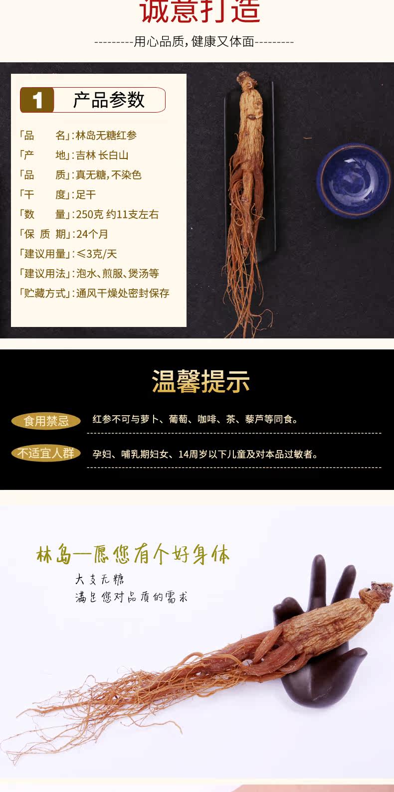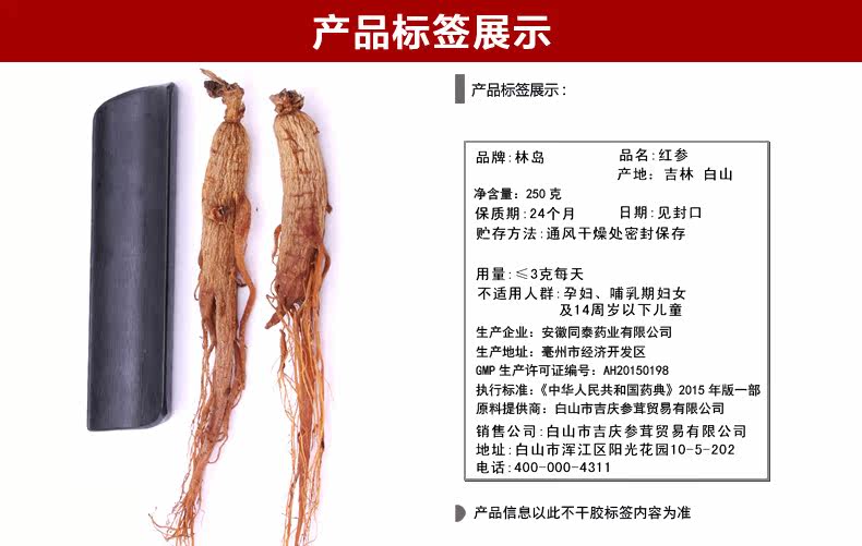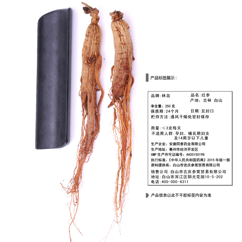 林岛 Красный женьшень Северо -восток Рен Гонг Чангбай Маунтин Гинзенс не -сусгар -безгайный женьшень граница красный женьшень 250 грамм/версия