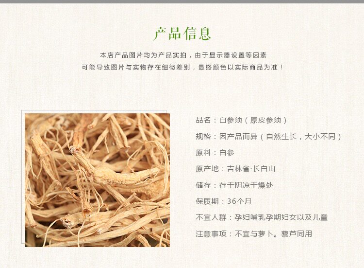 Северо -восточный женьшень женьшень Гинзенд Чанбай Маунтин в горе Чанбай в течение 8 лет, без серы и солнечного женьшеня 250G 500G35 Поддержка женьшеня женьшеня