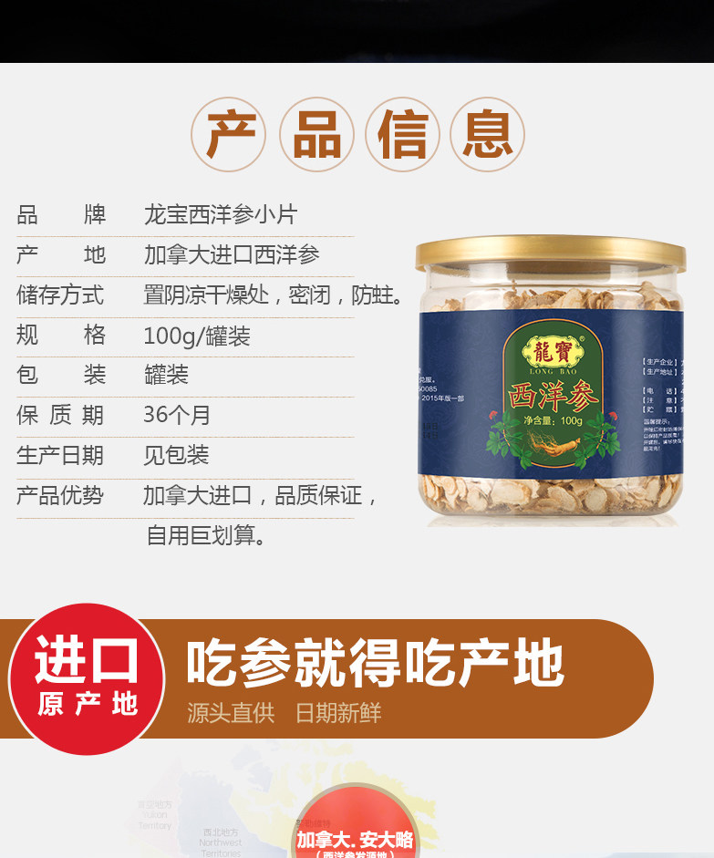 龙宝 Канада импортированный американский женьшень содержит не -флаг -женьшень женьшень смягченные подушки 100 грамм
