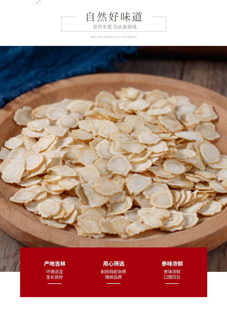 Американские срезы женьшеня содержат 125 г Чангбай Маунти -Жинцент, чтобы доминировать в невозможном подлинном женьшене с волками чай