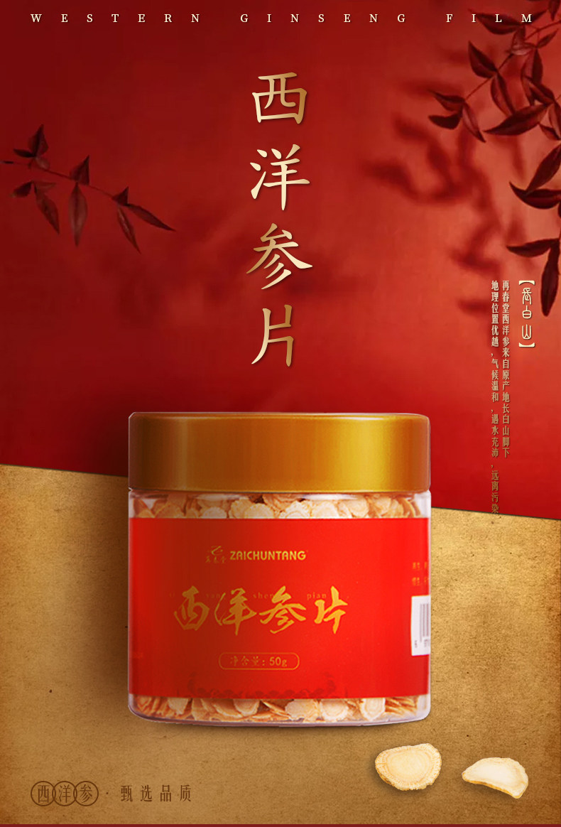 Ломтики американского женьшеня Zaichuntang, 50 г, гора Чанбайшань, настоящие пастилки с американским женьшенем премиум-класса, кусочки женьшеня, обрезанные секции, нарезанные ломтики