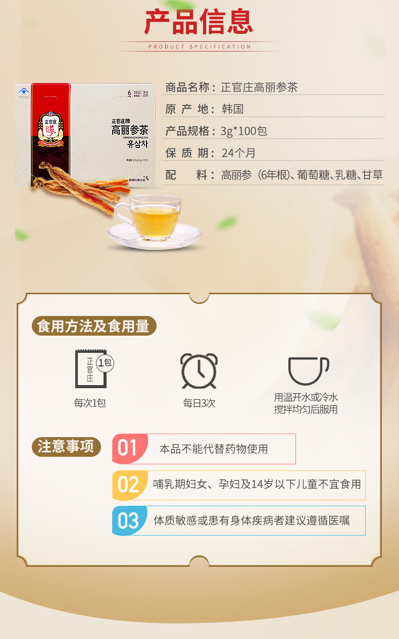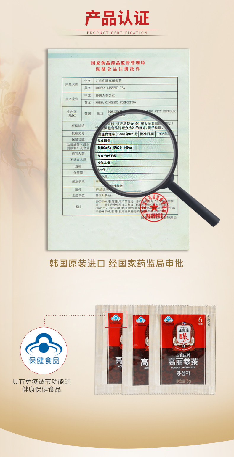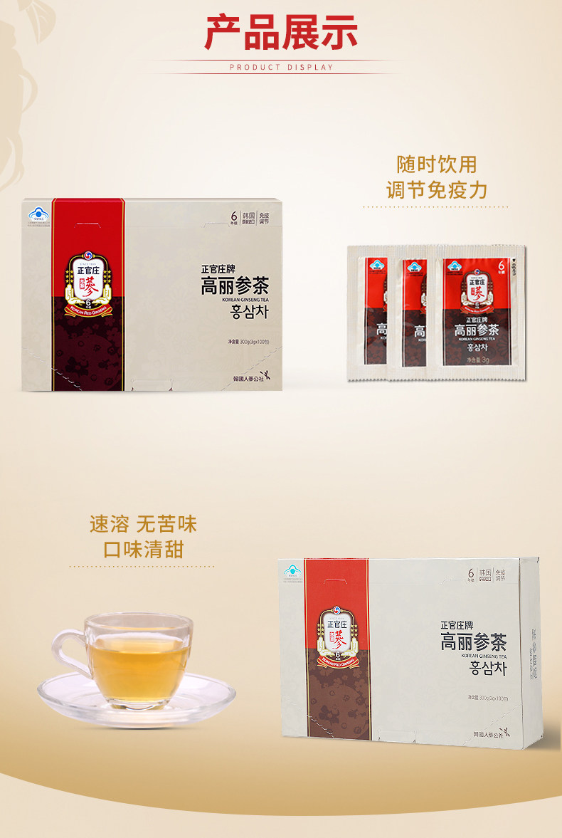 Южная Корея Чжэнгуаньюанг Импортированные корейские чайные гранулы сумки и питание 3G*100 упаков