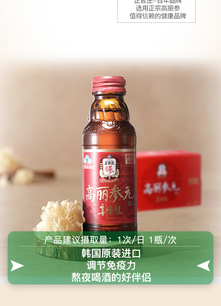 Южная Корея импортировала Zhengguanzhuang Gaoli Ginseng Red Ginseng Напитки 100 мл40 бутылки с женьшенными напитками питательные подарки