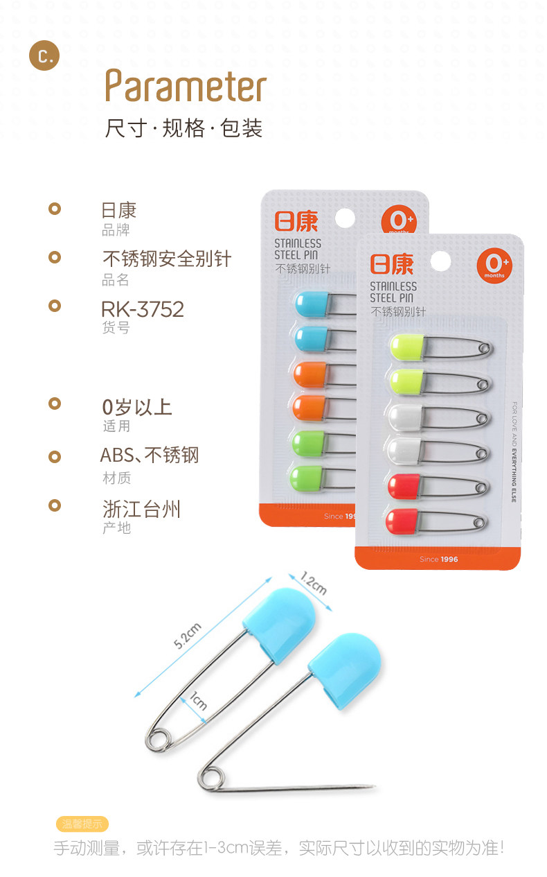 日康 Детская булавка для новорожденных, 6 шт