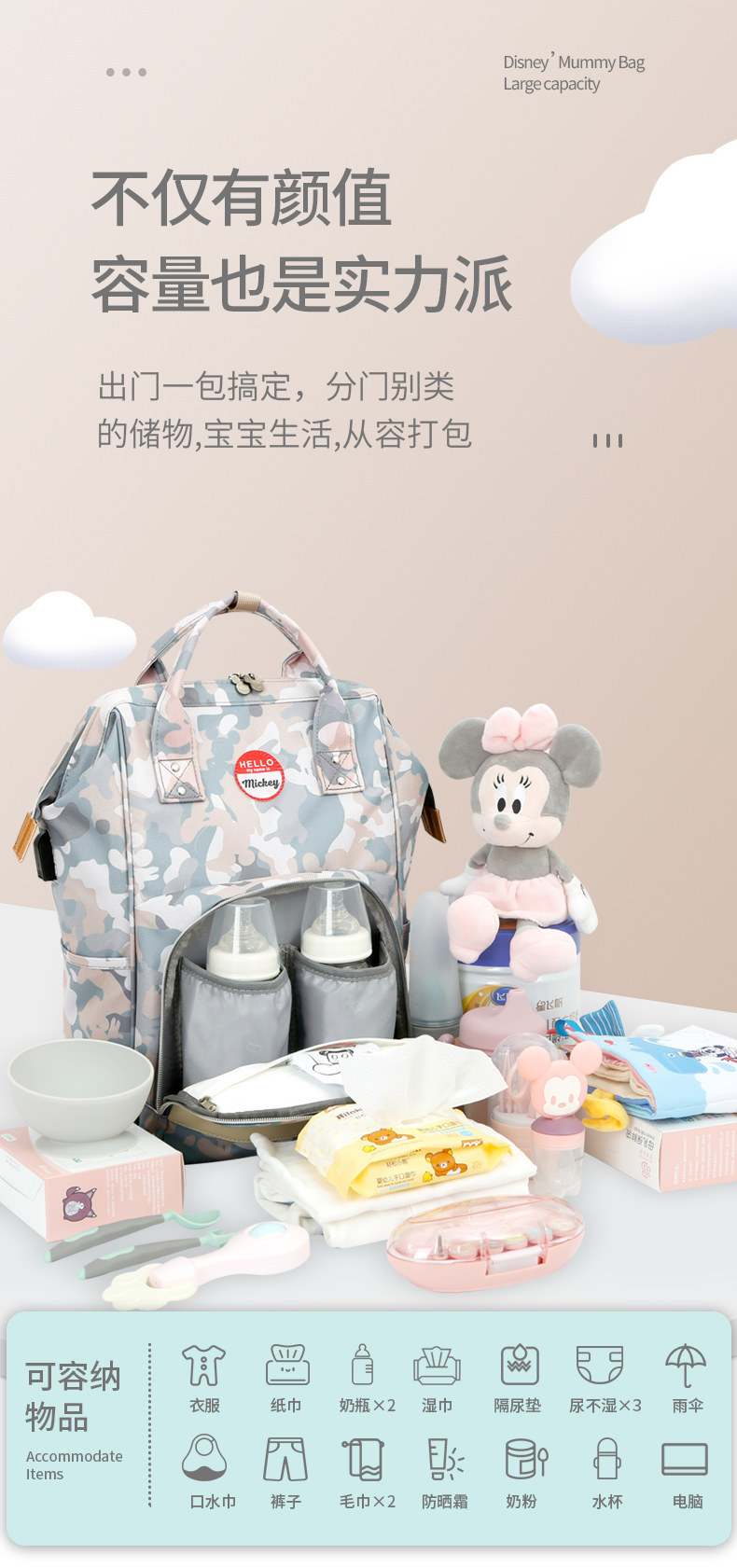 Дисней, вместительная и большая универсальная сумка для матери и ребенка, надевается на плечо
