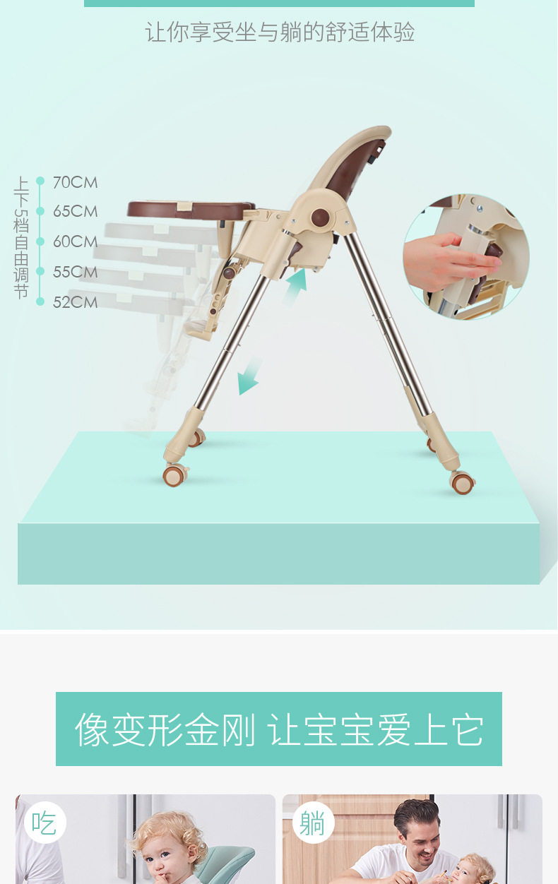 Детский стульчик для кормления, универсальное складное детское портативное кресло для еды