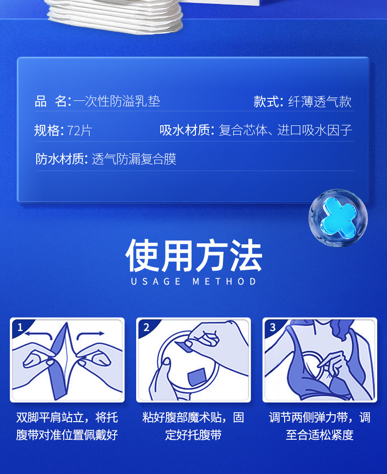 贝莱康 Одноразовые ультратонкие герметические прокладки для груди, наклейки на соски для молодой матери, можно стирать, 72 штук