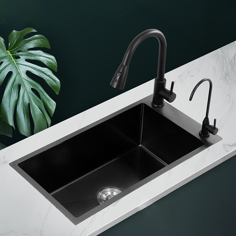 Одиночная канавка Черная нано -сталь 304 кухонная раковина для мытья посуды узкая и длинная рука бассейн