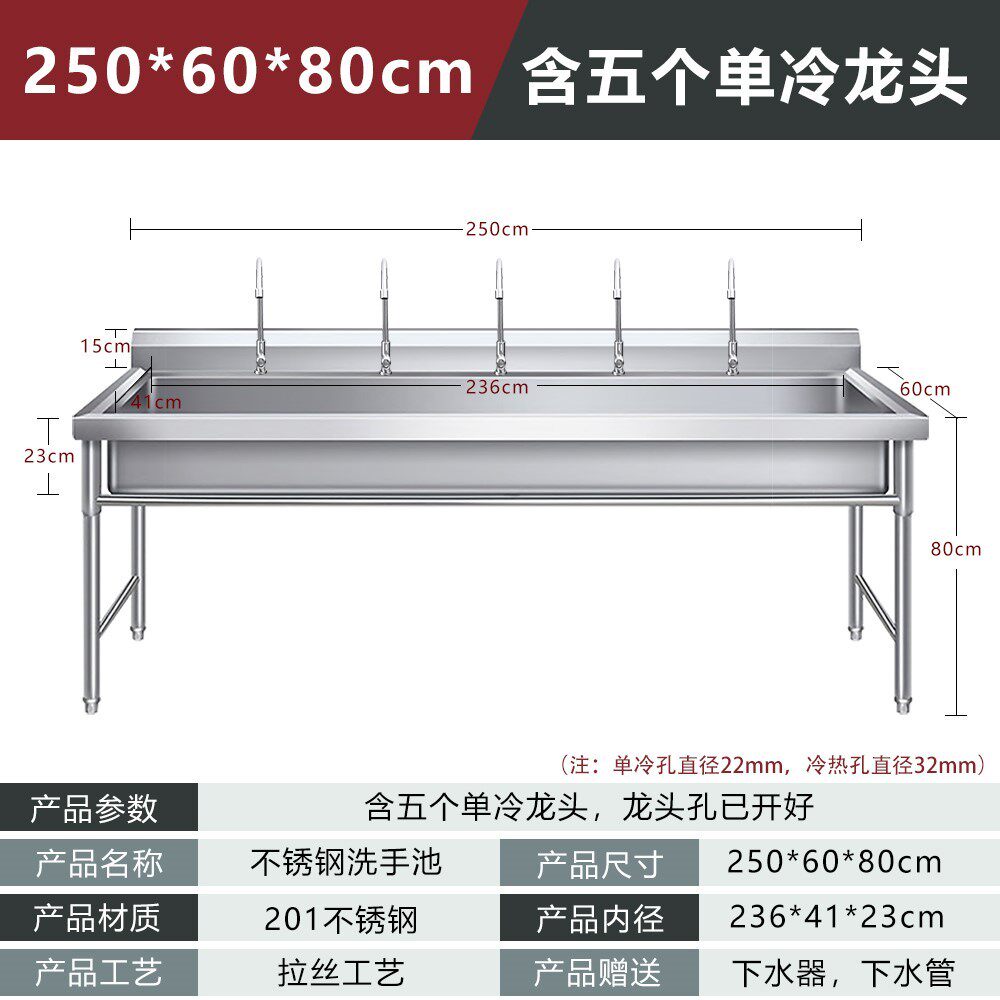 Умывальник из нержавеющей стали 4м3м2м, заводской умывальник для столовой, ручная раковина, школьный длинный бассейн, раковина с одним резервуаром