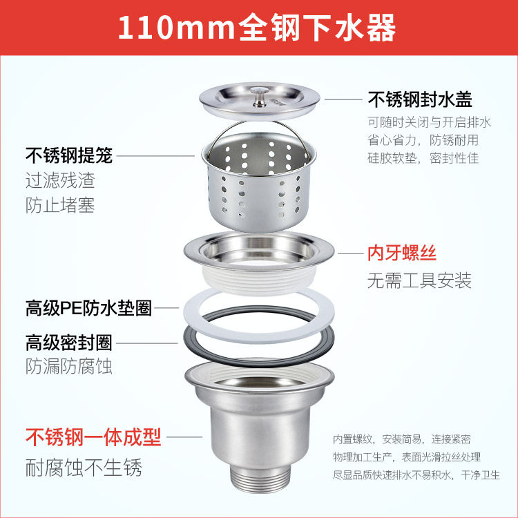 Кухонный резервуар из нержавеющей стали канализации корзины, прачечная, однонаправленные канавки с двойным слотом 110 клетки -офф.