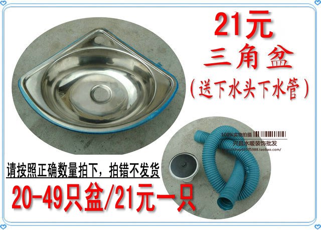 [亲][, ][不锈钢三角盆][数量1-19个价格是23元一个][;]20-49[个优惠2元一套][价格是21元一个][,][50套以上只需要19.5元一个(上不封顶),][套餐1或者套餐2也是一样,20套起优惠2元,50套起优惠3.5元一套(上不封顶)][。][亲们拍下的时候请选择正确的数量拍下,][拍错不发货的哈,谢谢理解!]