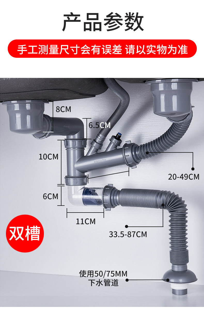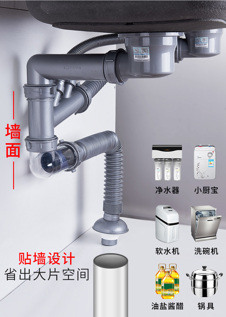 Подводная лодкая бассейн нижняя труба трубопровода кухонная раковина однодневная двойная река промывка реки