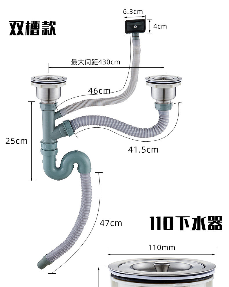 Кухня мытья бассейн нижняя труба труба труба трубопровод для раковины двойная раковина пруда для мытья пруда