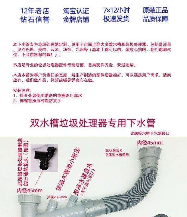 Измельчитель пищевых отходов специальная труба канализационная универсальная универсальная кухонная фурнитура InsinkBaker 45м.
