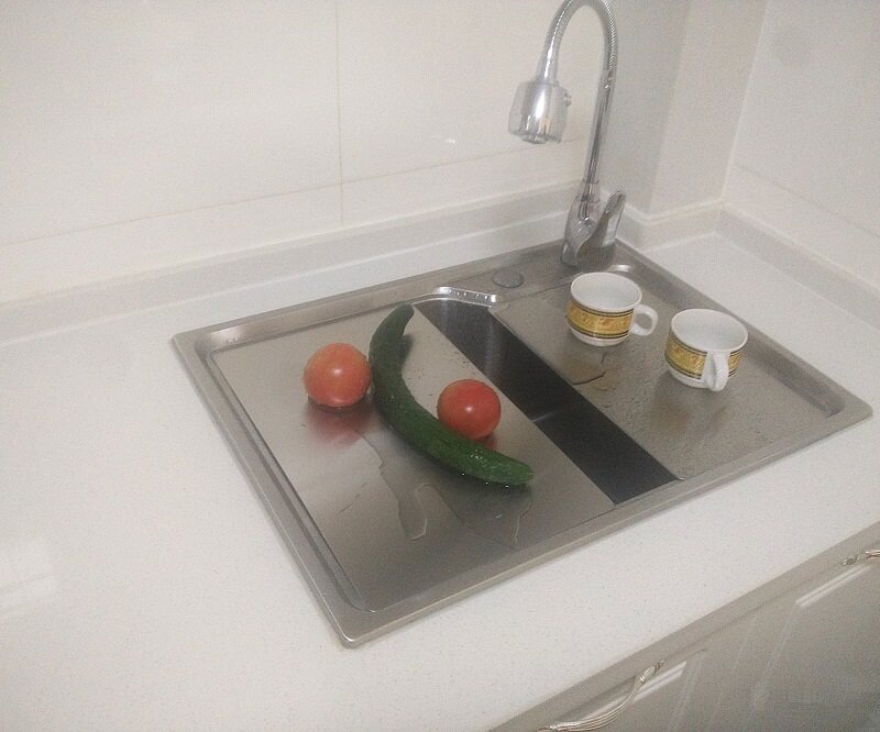 Во время крышки раковины, украшая овощной пруд, он также осветляет общую красоту кухни.