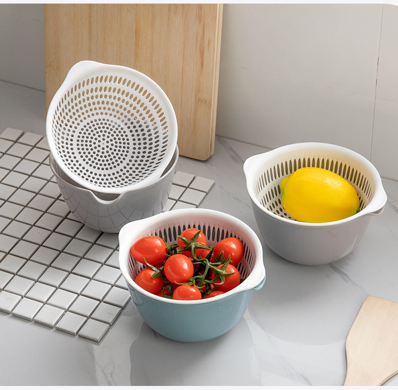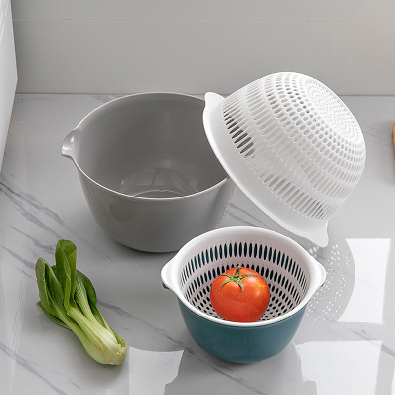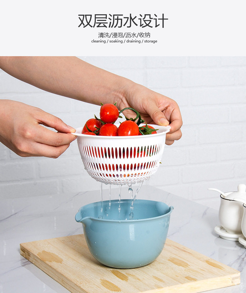 Пластиковая двухслойная корзина для овощей, сливная корзина, кухонная корзина, бытовая тарелка для фруктов, многофункциональная круглая корзина для овощей, корзина для фруктов