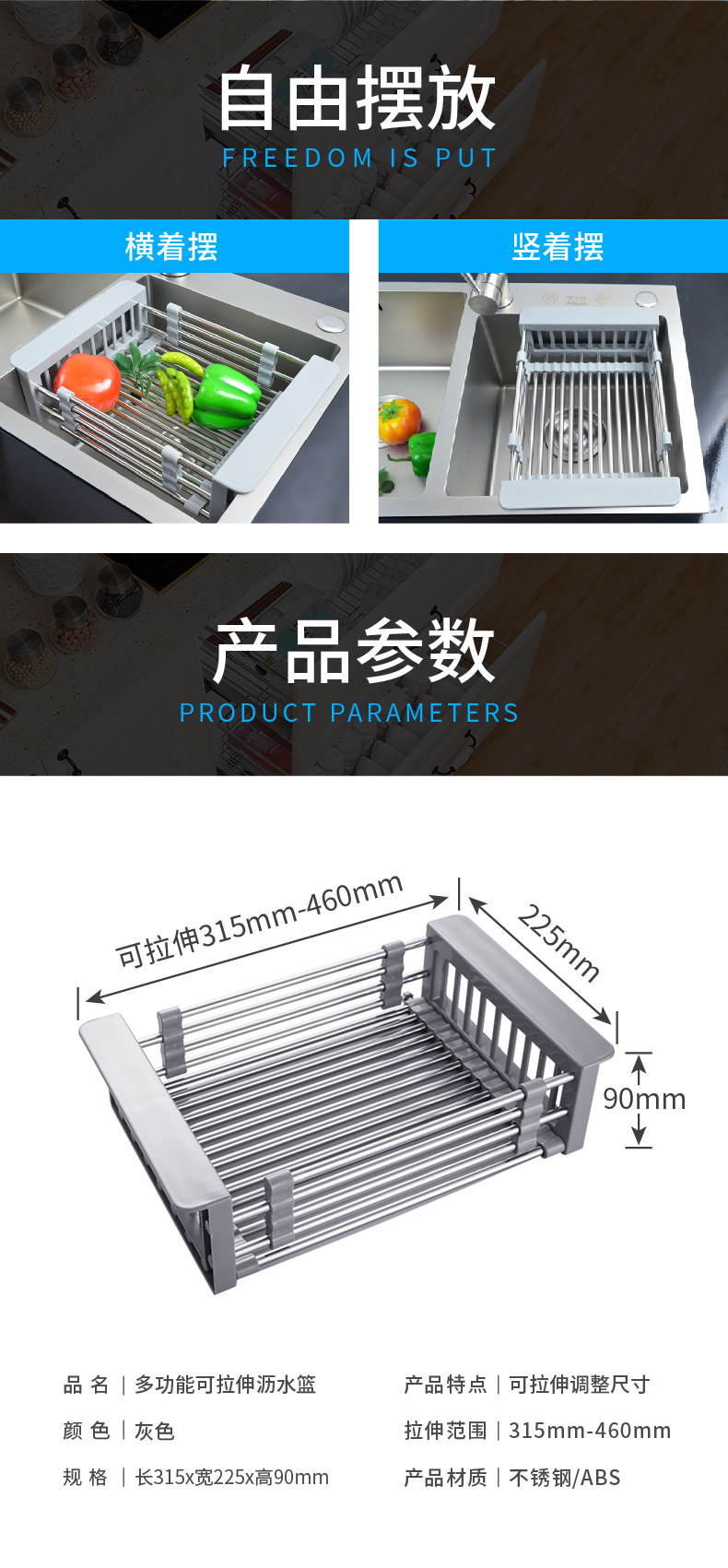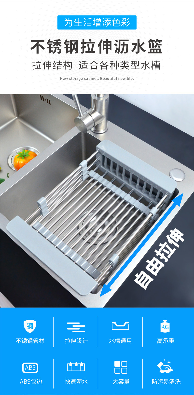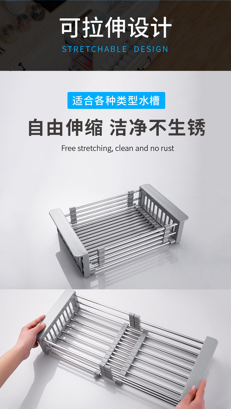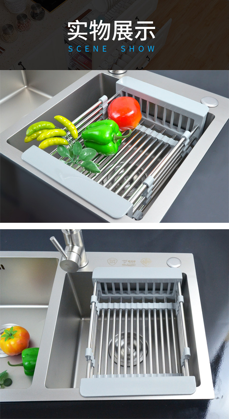 Кухонная раковина сливка может выдвигать и слить слив, нержавеющая сталь, мытья бассейна из нержавеющей стали, корзина для водяной корзины, посудомоечная машина, пруд