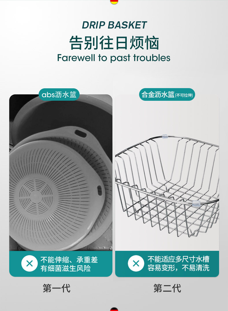 Немецкая кухонная раковина Junquan, выдвижная сливная корзина из нержавеющей стали, прямоугольная сливная корзина для бассейна, раковина для посудомоечной машины, овощи