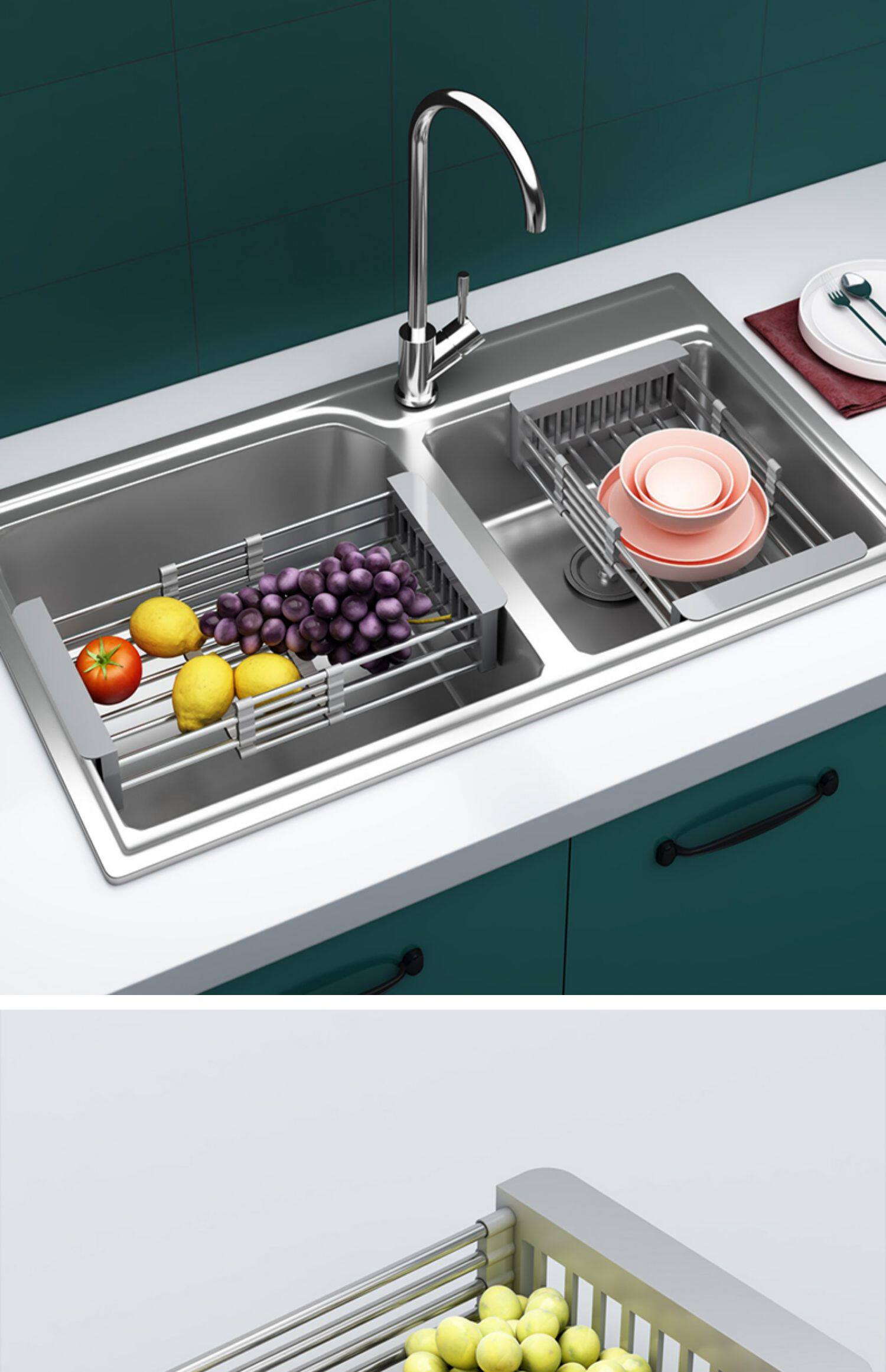 - Раковины телескопическая дренирующая корзина с серым