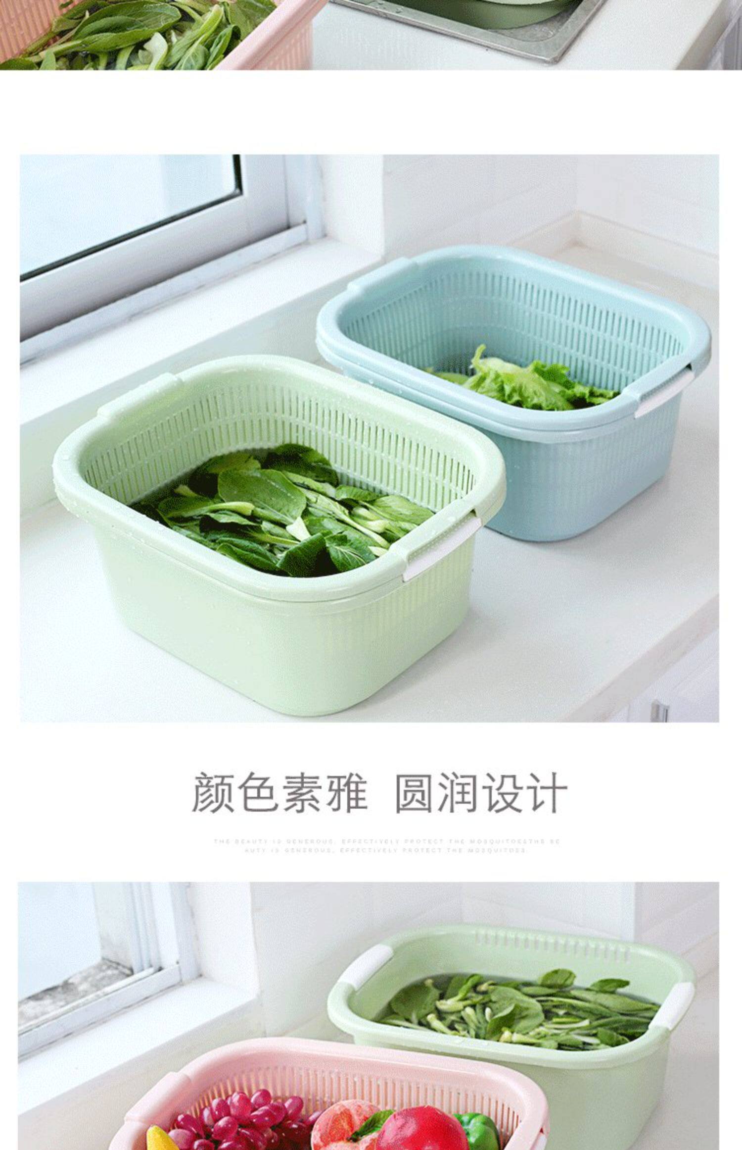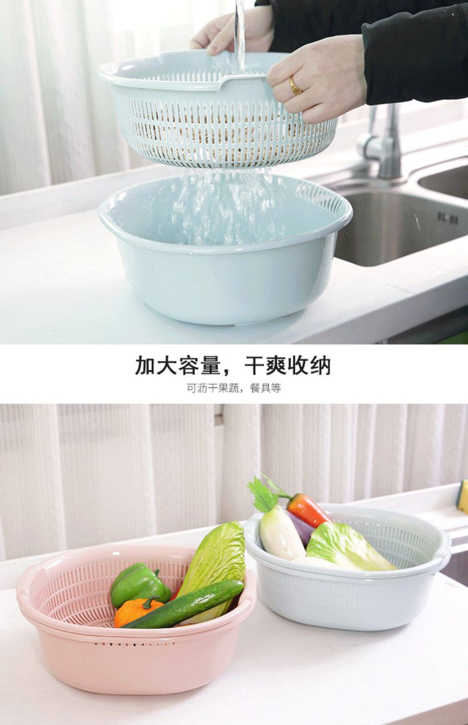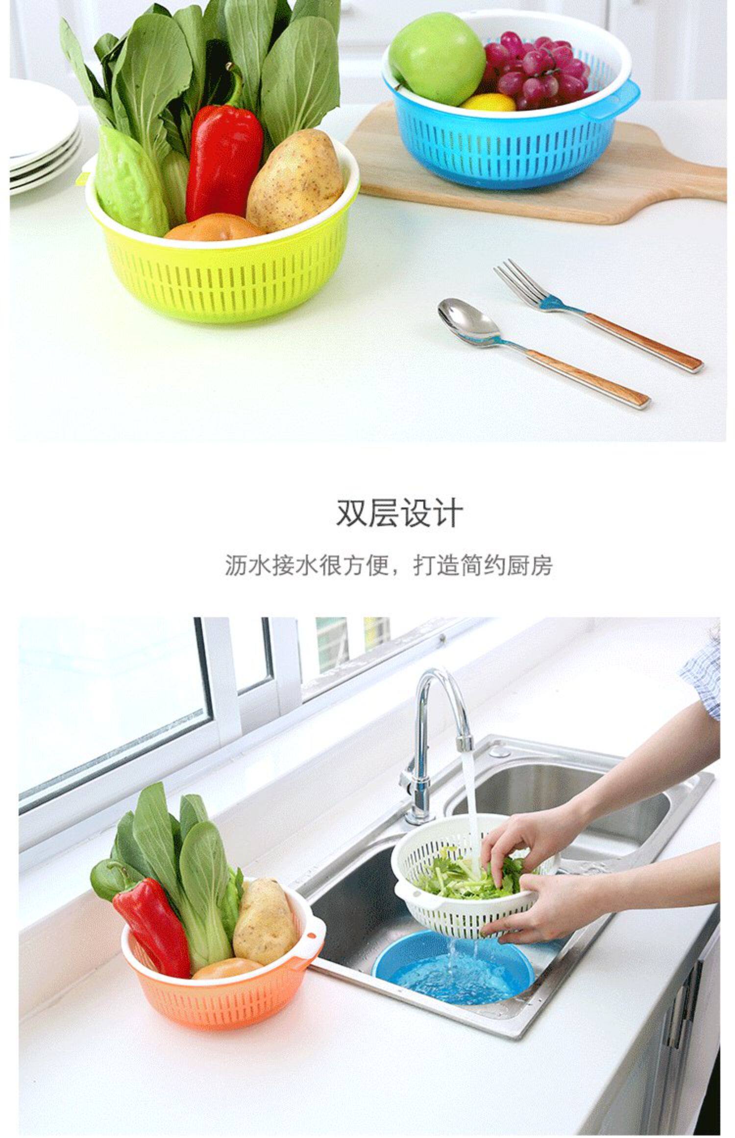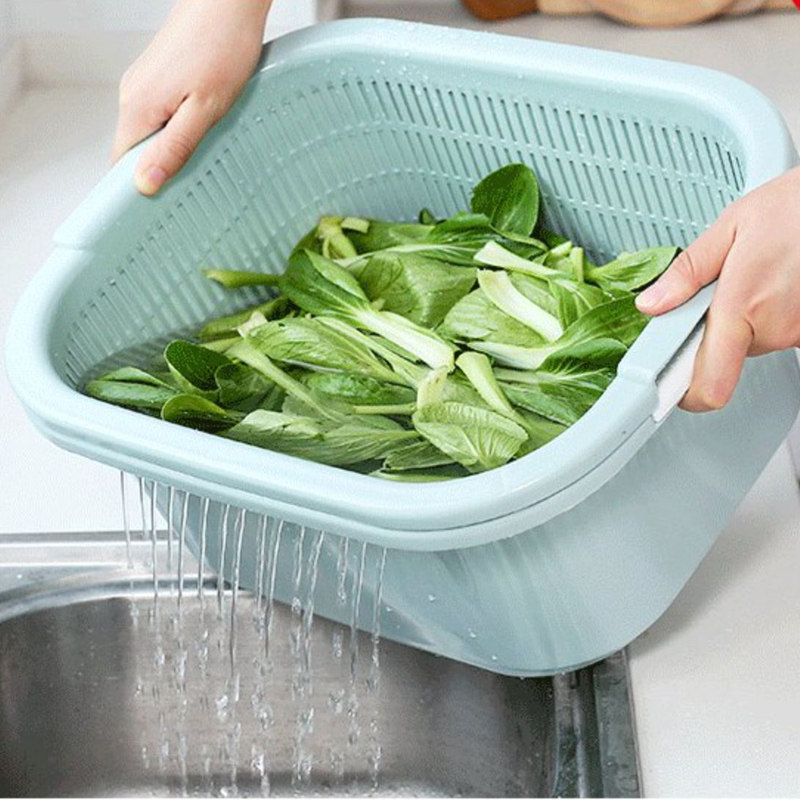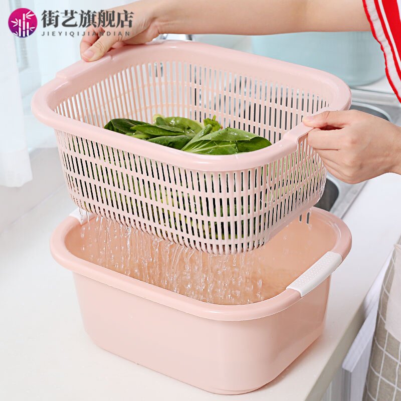 Два -слоя растительного бассейна пластиковая сливная корзина утечка горшок с рисом артефакты овощная корзина амои горшок домашняя кухня мыть фрукты бассейн