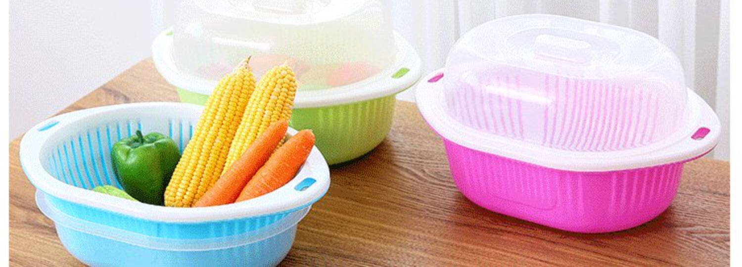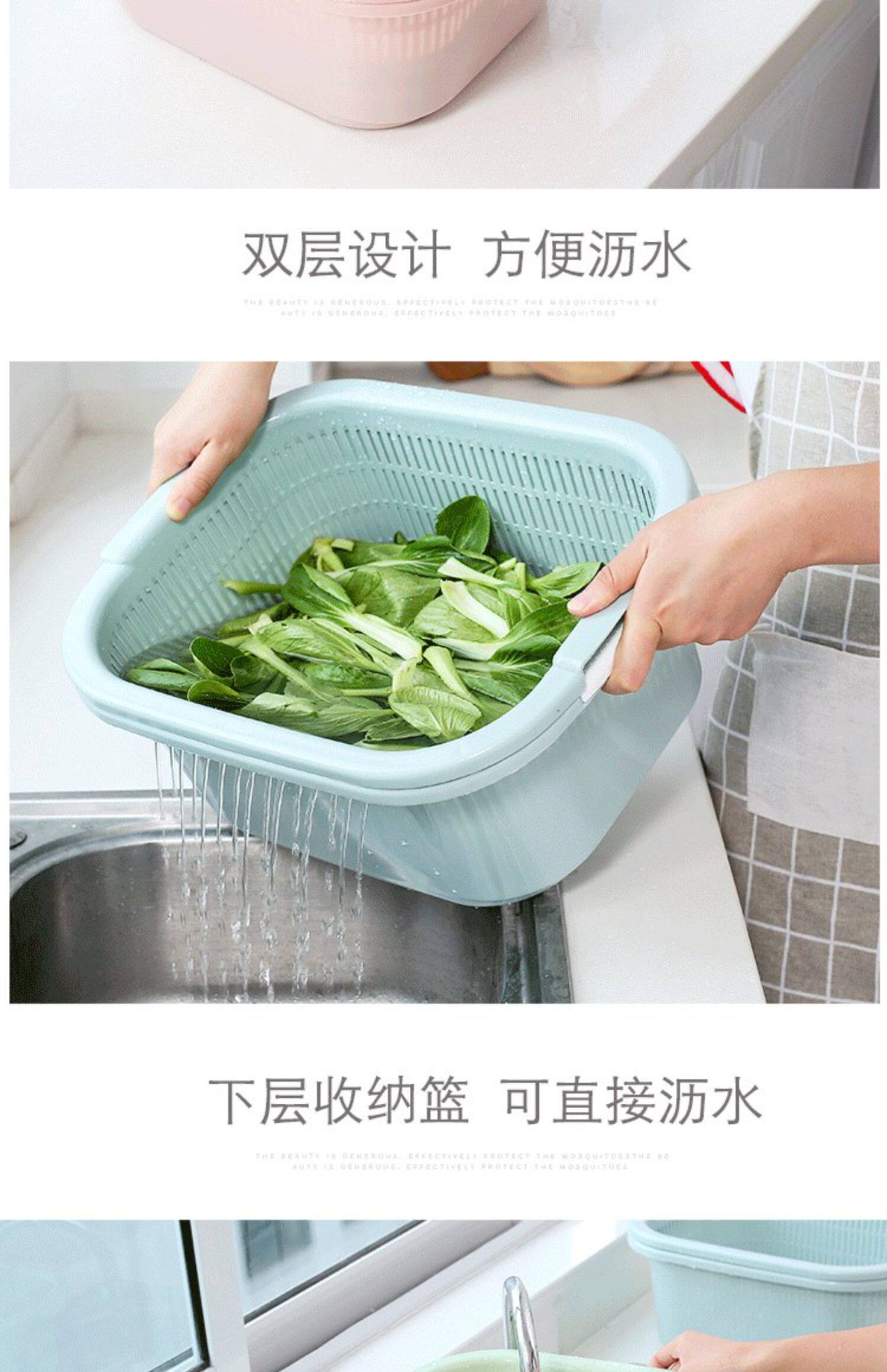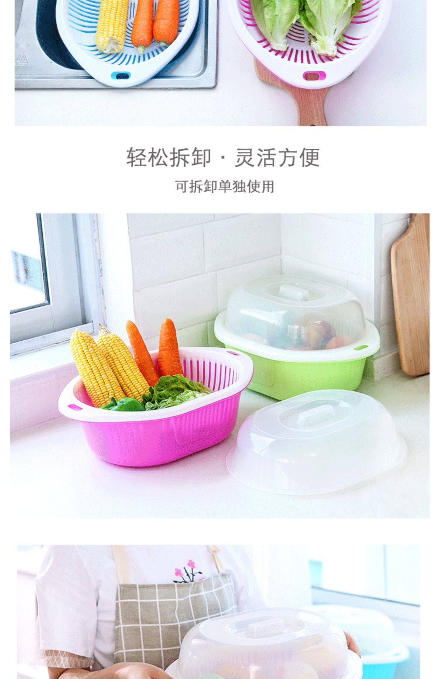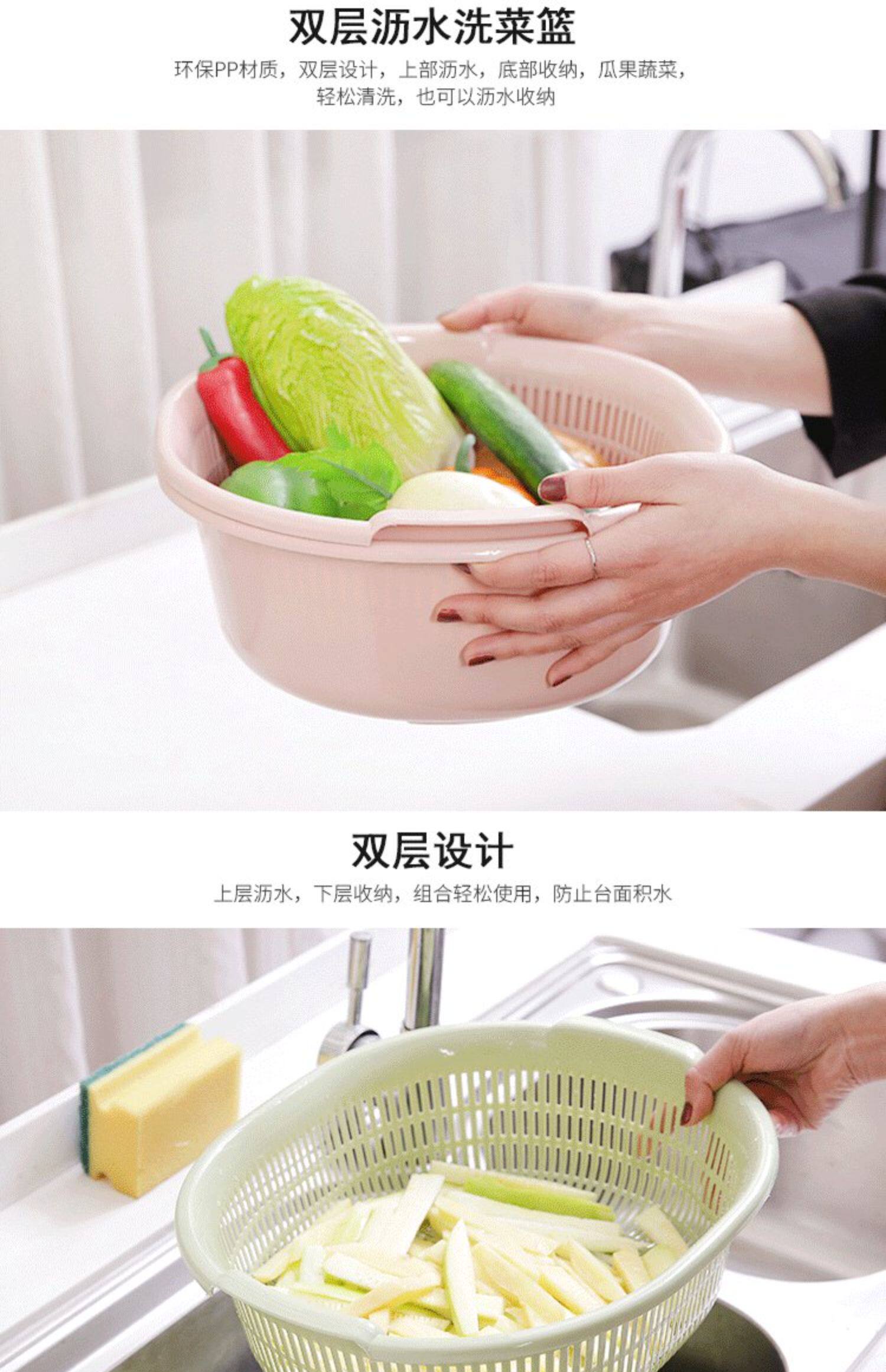 Два -слоя растительного бассейна пластиковая сливная корзина утечка горшок с рисом артефакты овощная корзина амои горшок домашняя кухня мыть фрукты бассейн