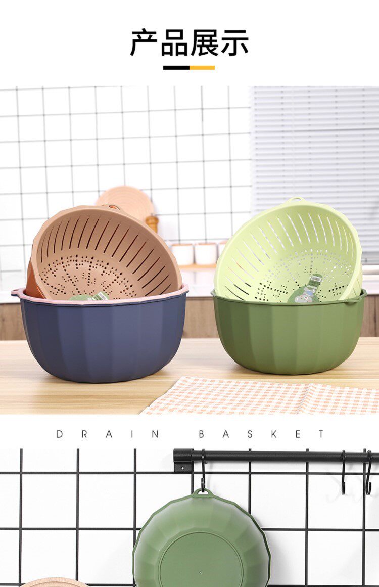 Домашняя розовая кухня круглая овощная корзина для корзины с двойной корзиной с двойным промыванием сито мыть