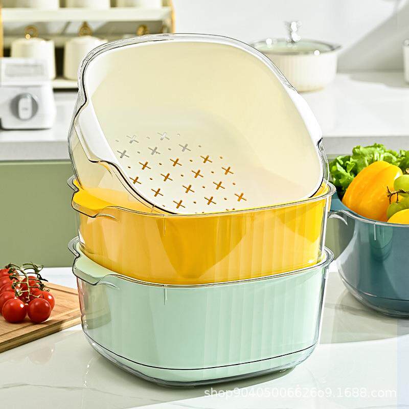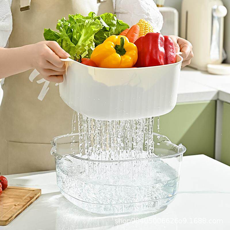 Двойная слоя белья бассейна дренажная корзина кухня дома пластиковая вода фрукты гостиная раковина вода и корзина для овощей, чтобы купить овощную корзину