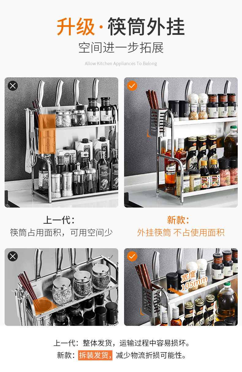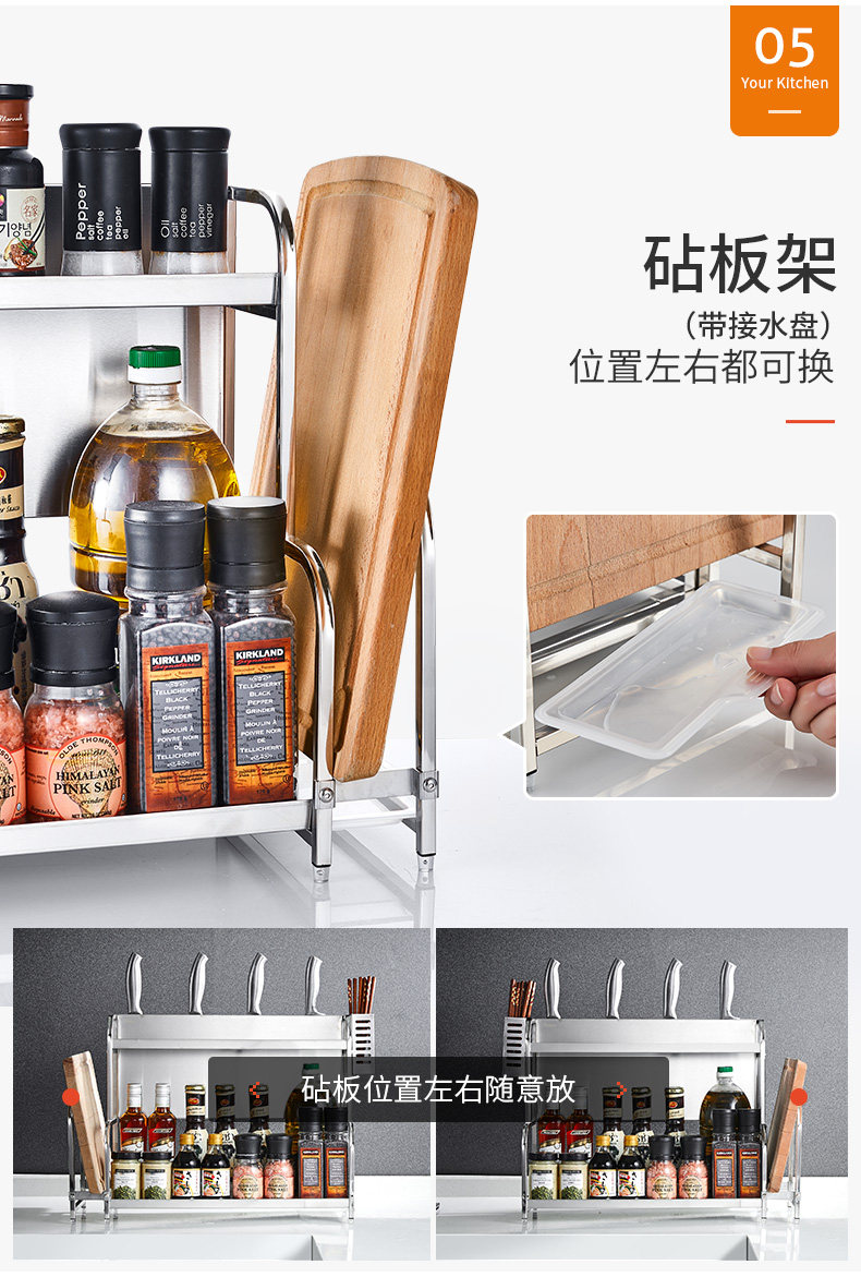 Carba из нержавеющей стали кухонная стойка приправа стойка на полке лопатка многослойное соляное соус -уксус хранения хранения хранения