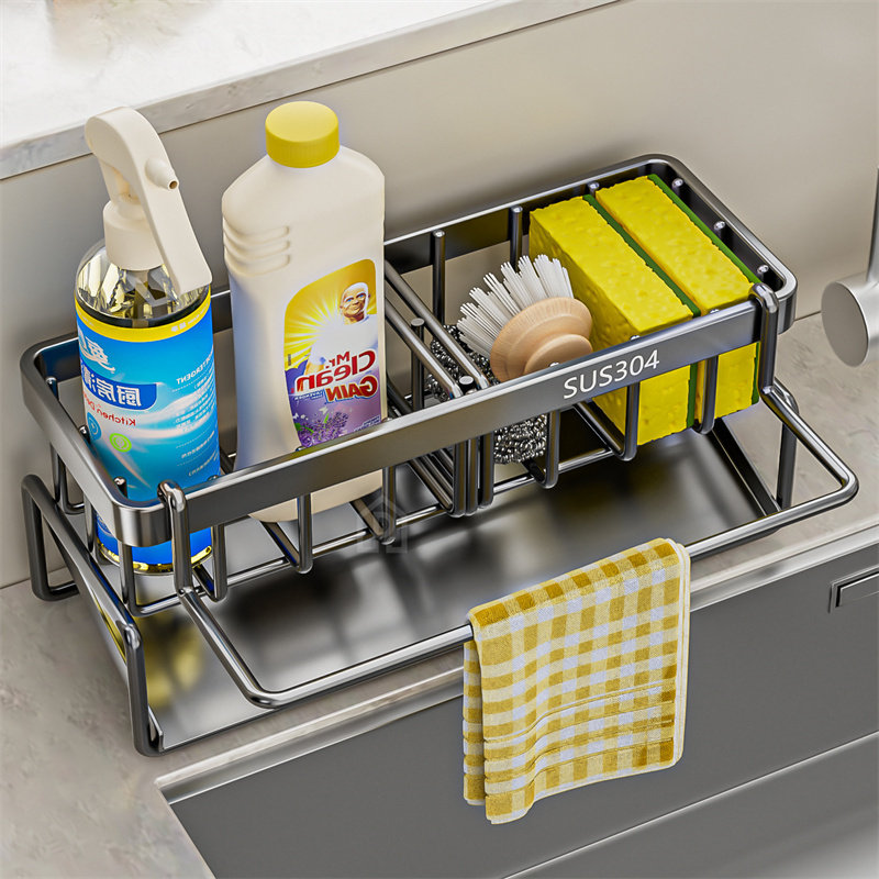Кухонная полка для хранения из нержавеющей стали, тряпичная полка для раковины, смеситель для раковины, стальной шарик для хранения, сливная стойка, столешница