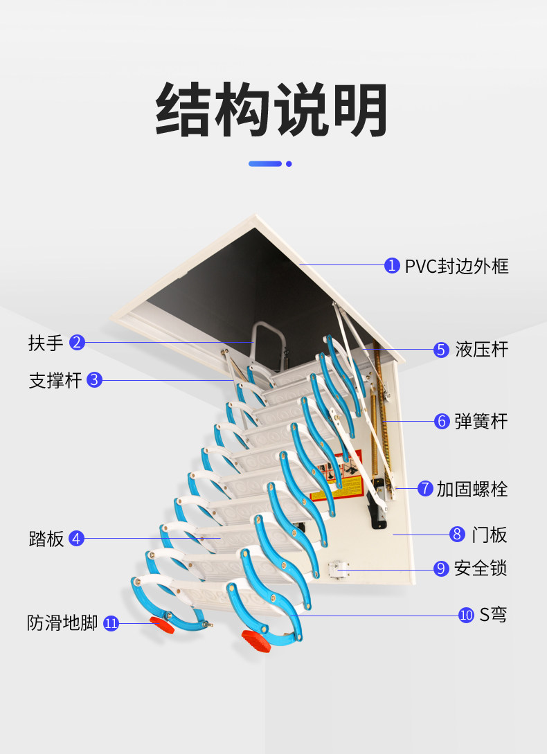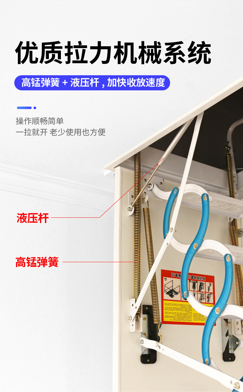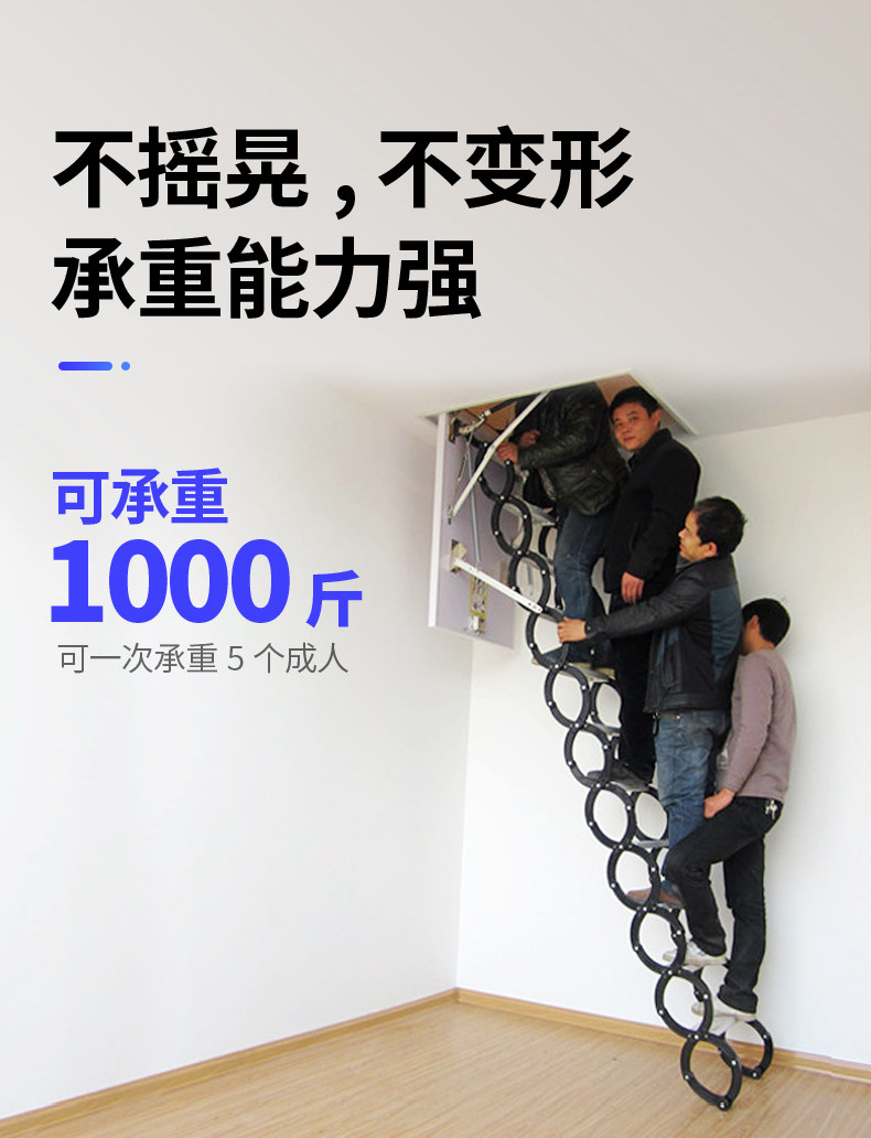 动力足 Attra Телескопическая лестница бытовая удлинительная растяжка Скрытая скрытая лестница складка в помещении и толстая растяжка для растягивания