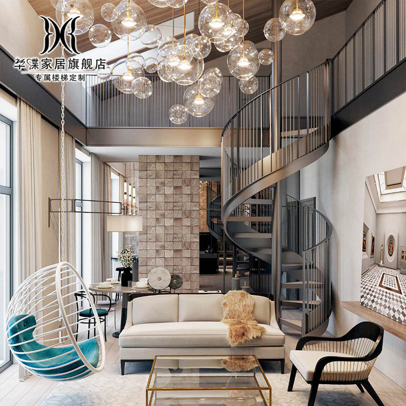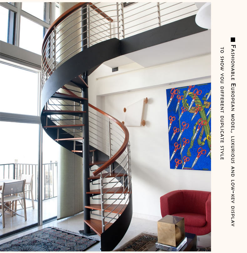 Вращение общей лестницы лестницы, общий слой лестницы из европейских зрителей, накапливаемой стали и деревянного настраиваемого дома Diy Modern