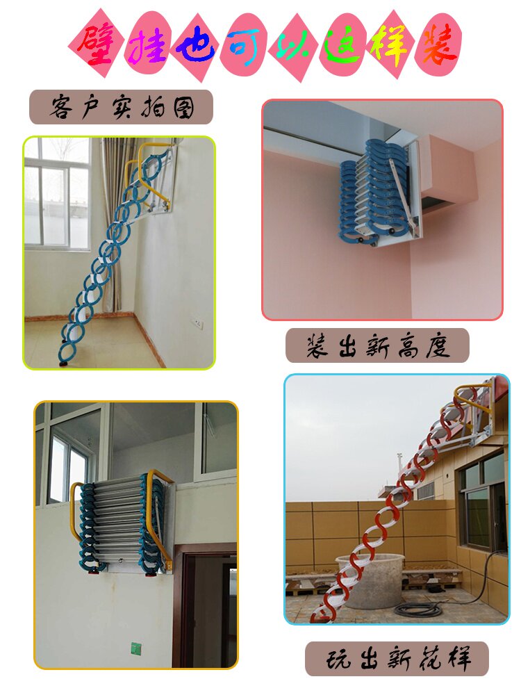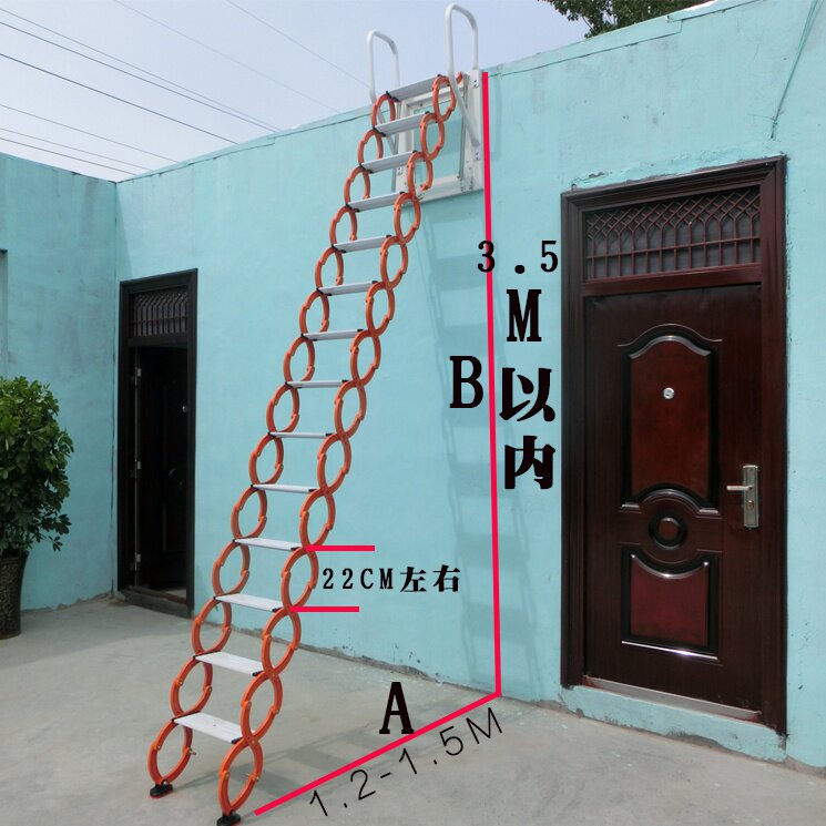 Стеновая телескопическая лестница с подлокотниками чердак домашней дуплексной лестницы на открытом воздухе.