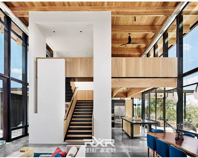 Light Luxury Custom Indoor Общая вилла лофта дуплекс -дуплекс двойной стали стальной и деревянной лестничной лестницы.