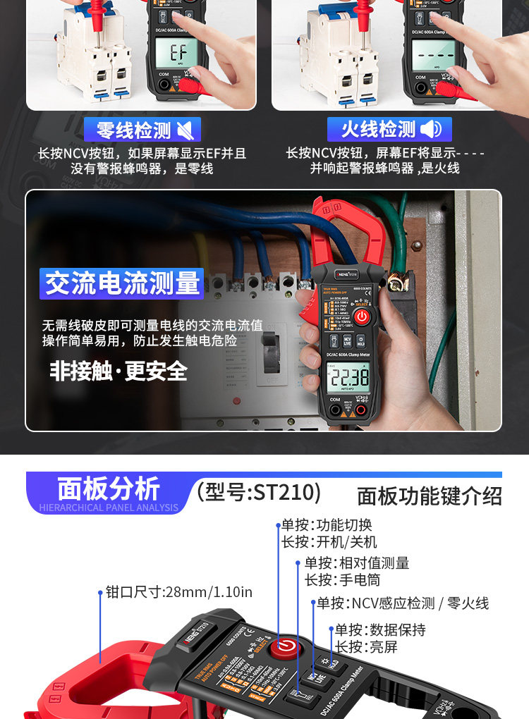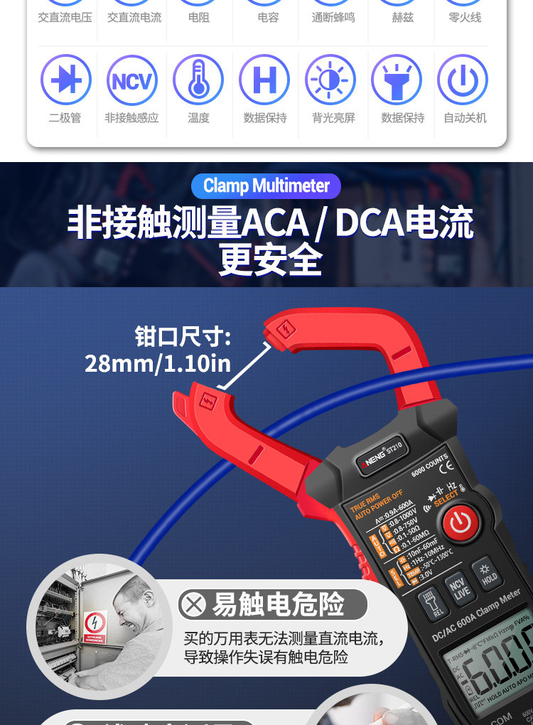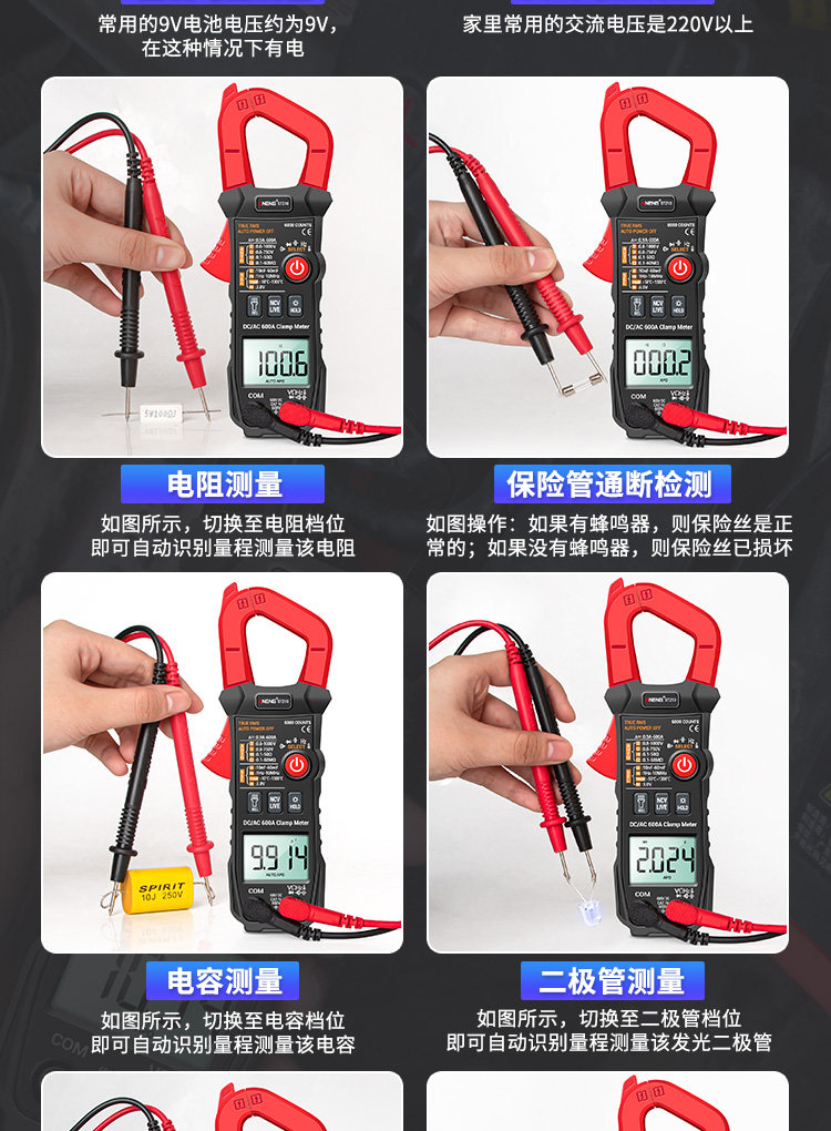 Портативные много -функциональные зажимы цифровой высокопроизводительный интеллектуальный мультиметровый Multiemeter Melteer Meter Electric Tie Watch