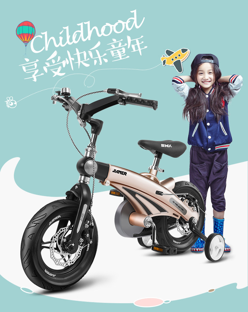 Регулируемый складной детский велосипед подходит для мужчин и женщин для девочек, 3 лет, 16 дюймов