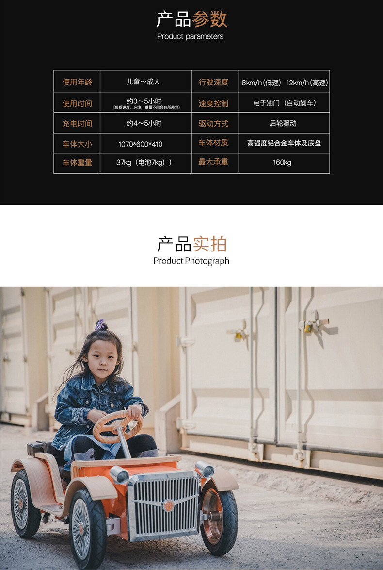 Импортный электрический электромобиль на четырех колесах, деревянная электрическая коляска, семейный стиль